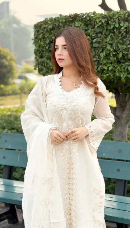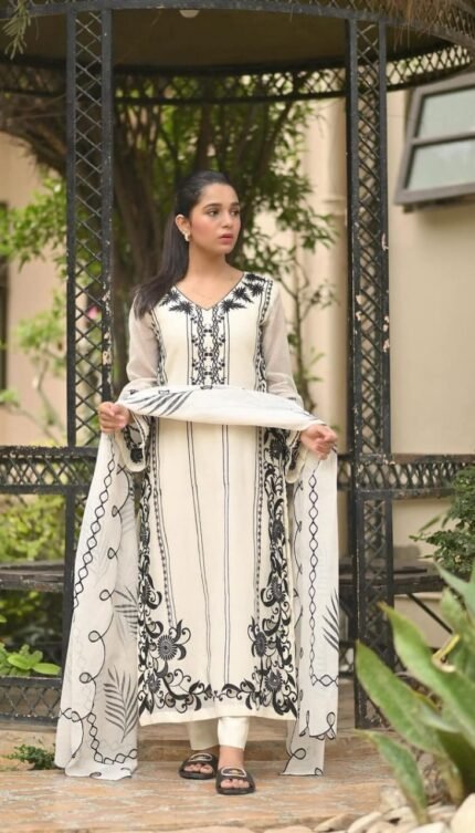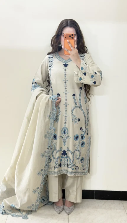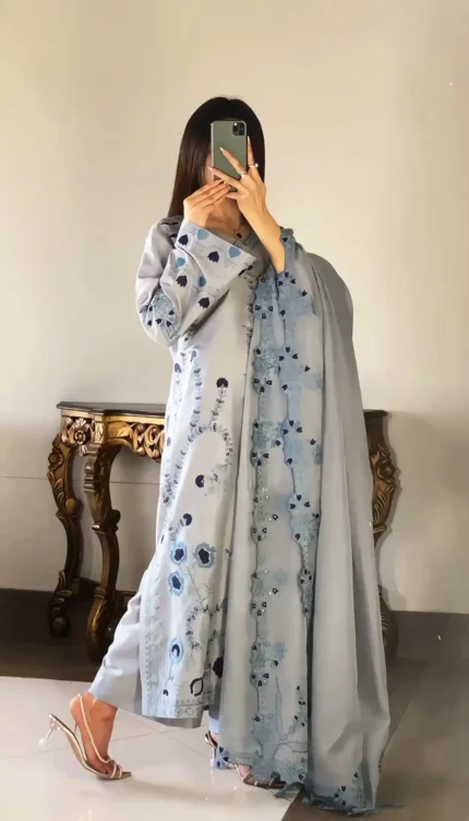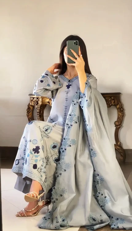 Silken Aura: Raw Silk 3 Piece Stitched Dress