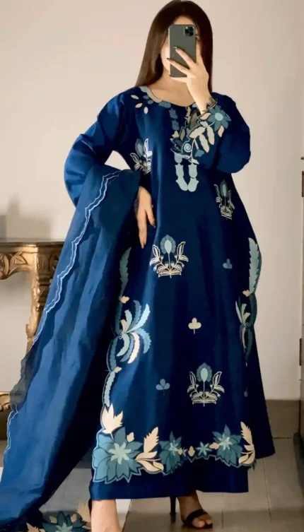 Teal Blue Elegant & Classy Stitched