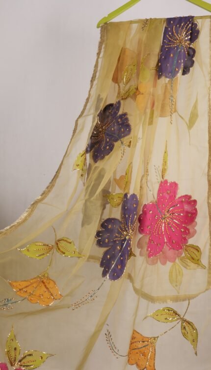 Hand-Painted Organza Dupatta with Embellished Work