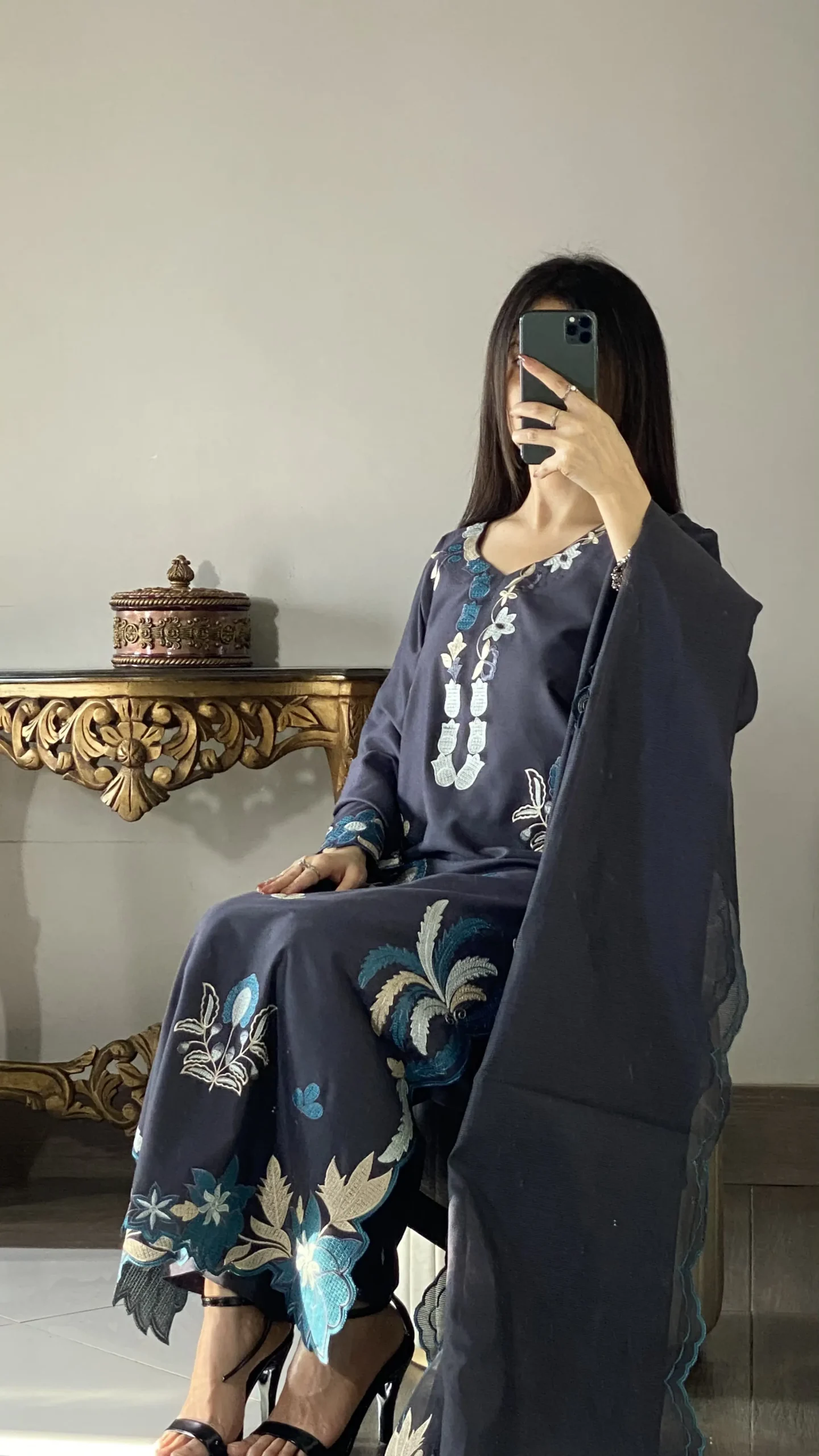 In love with Rivaaj Fashion’s new Kaftan Collection — a perfect blend of affordability, chic design, and effortless wear. Crafted in luxurious dull kattan resham silk with elegant viscose resham embroidery, this teal blue kaftan is ideal for everyday sophistication with a modern touch.