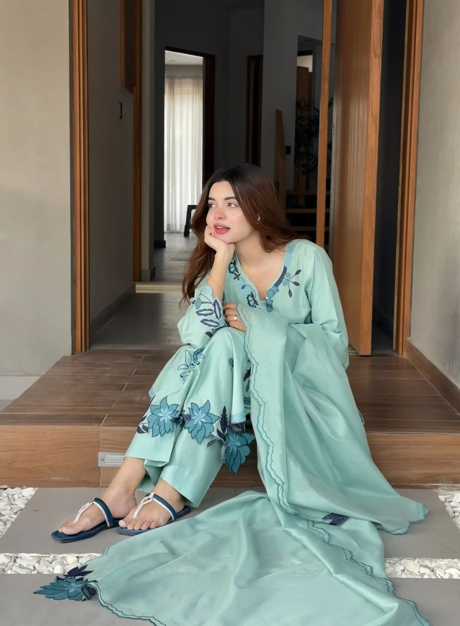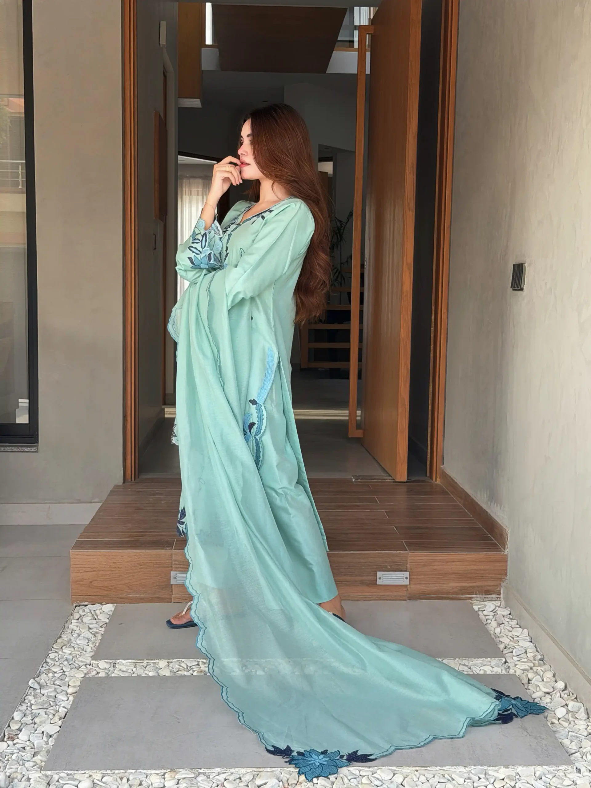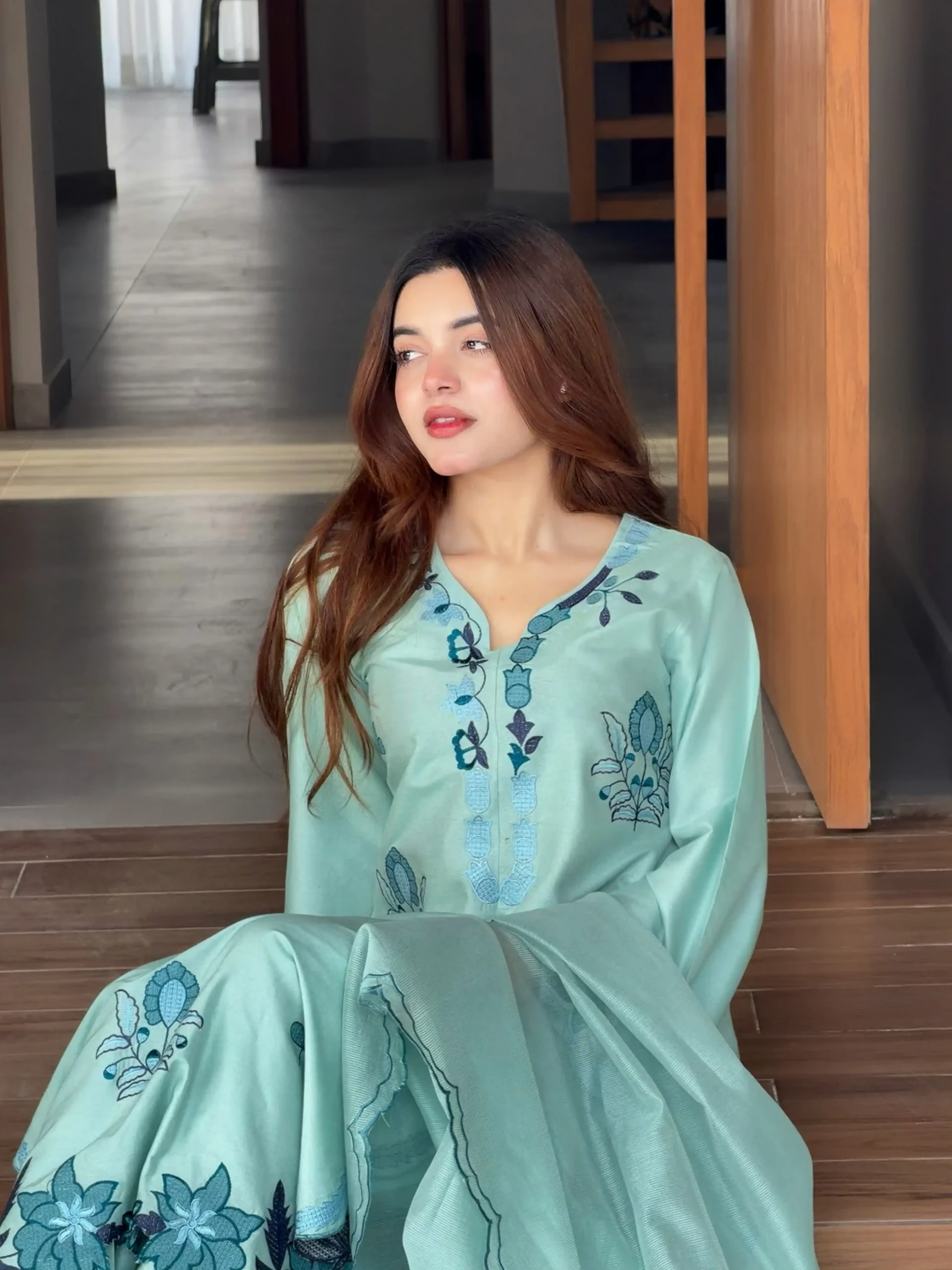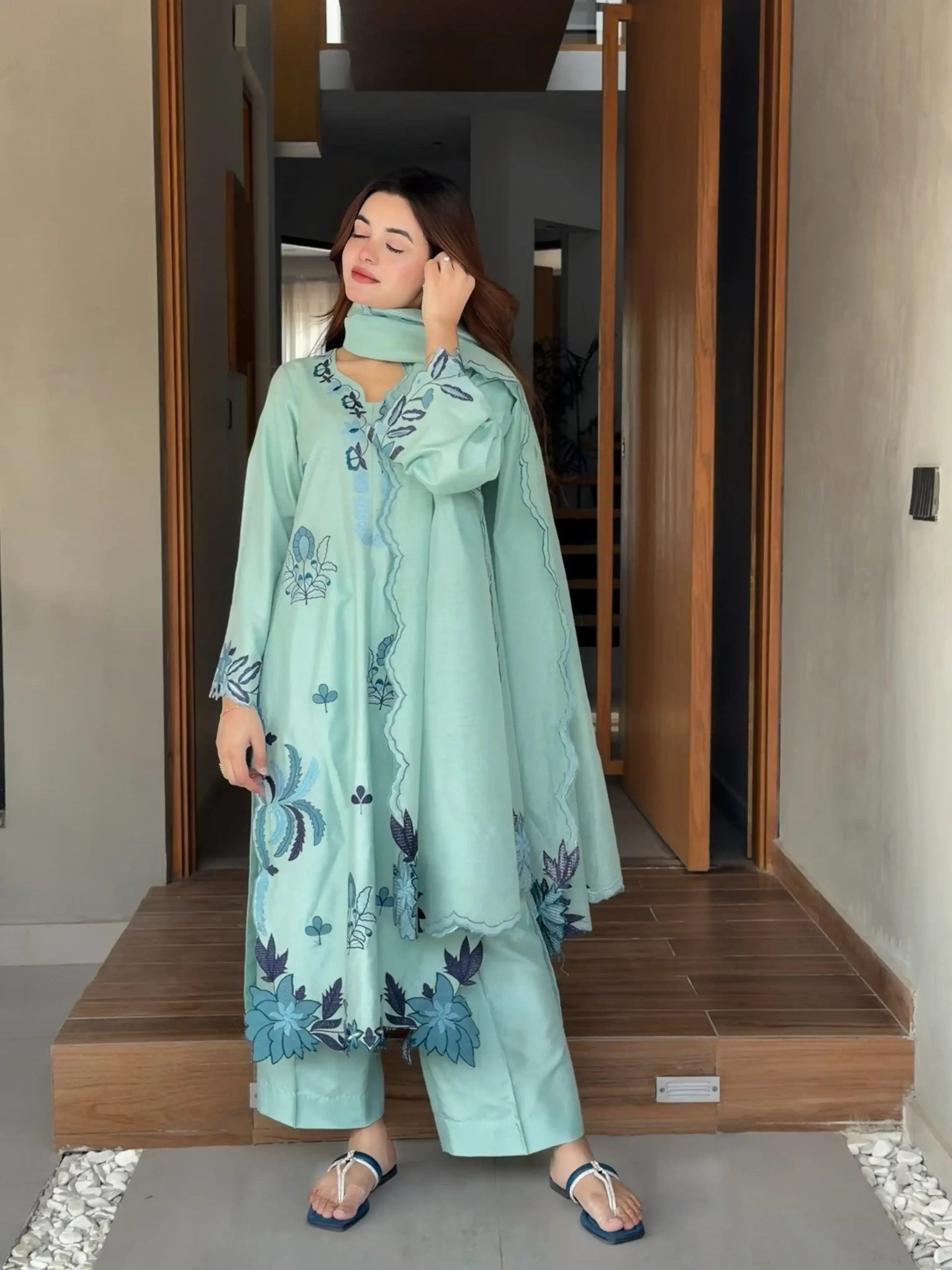 In love with Rivaaj Fashion’s new Kaftan Collection — a perfect blend of affordability, chic design, and effortless wear. Crafted in luxurious dull kattan resham silk with elegant viscose resham embroidery, this teal blue kaftan is ideal for everyday sophistication with a modern touch.