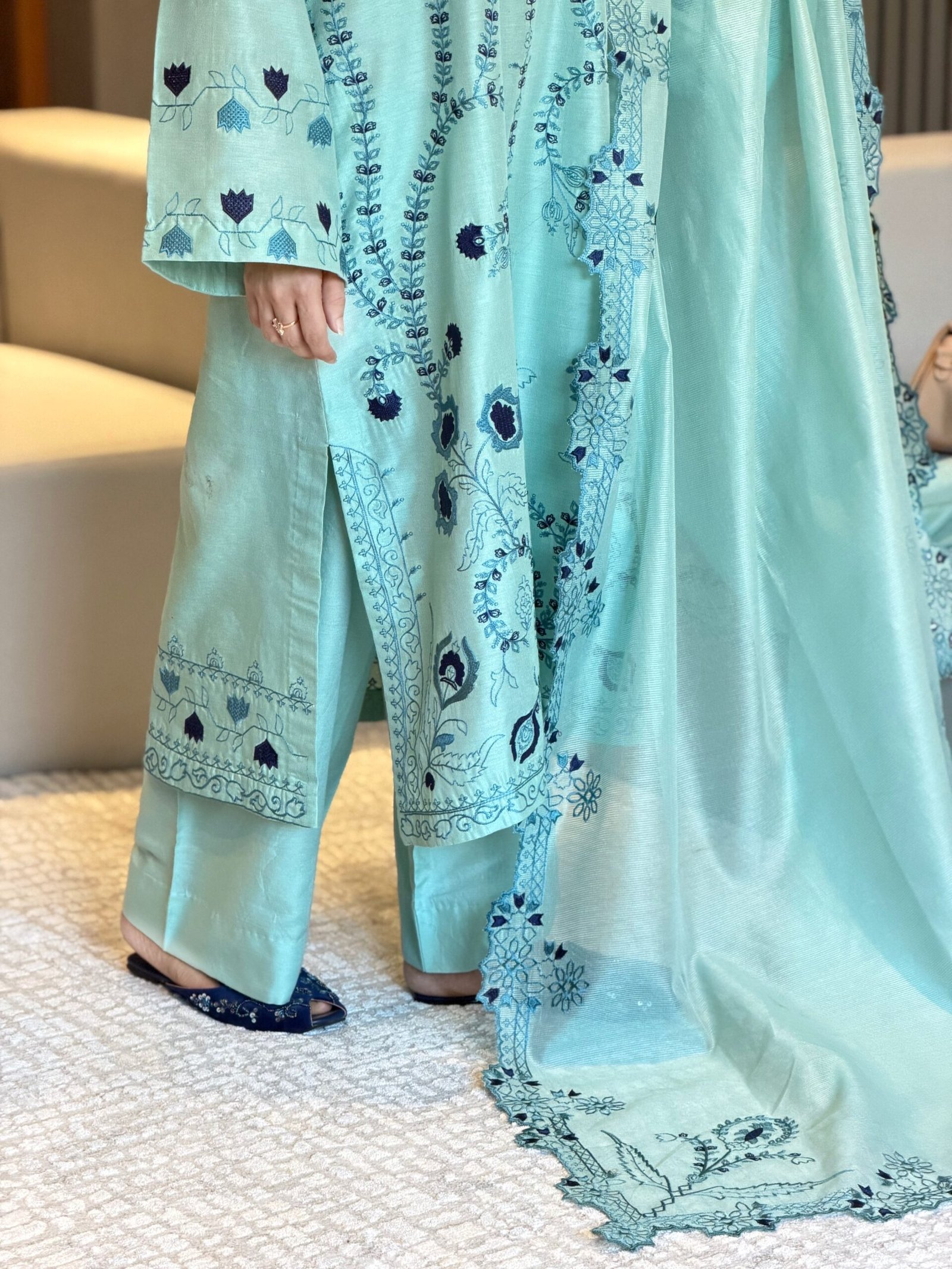 Soft hues, delicate prints & effortless grace. This elegant blue outfit is a perfect blend of comfort and sophistication — made for women who love timeless style. The flowy silhouette, graceful dupatta, and dreamy details add charm to every lookPerfect for festive gatherings, casual chic looks, or evening elegance.